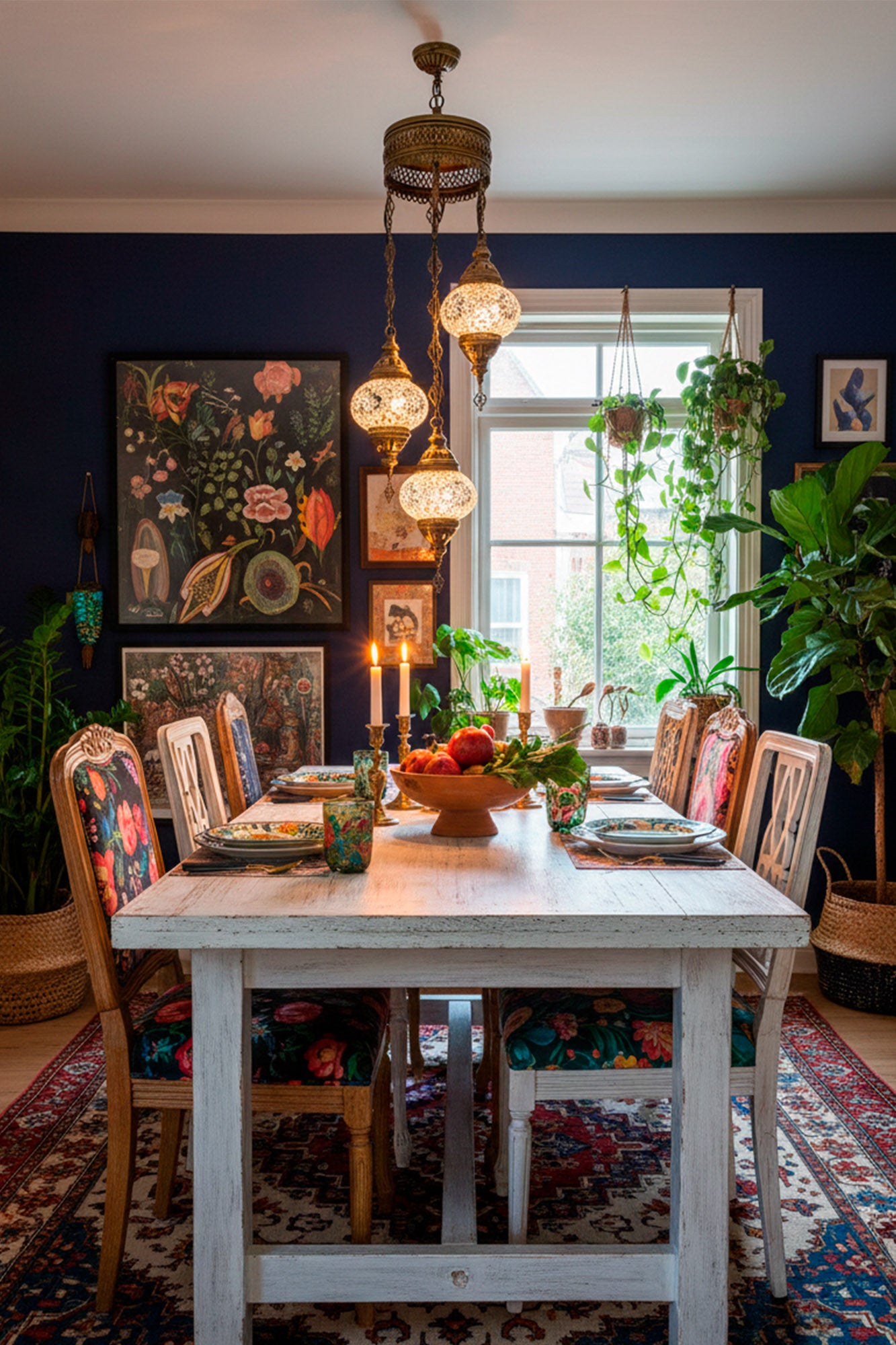 Lámpara colgante triple de mosaico hecha a mano en Turquía.